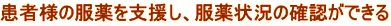 正しく服薬できないために患者様宅に残された『残薬』は年間 500 億円 (厚生労働省資料 P8,P9参照) もあると報道されています。薬品の正しい服用は、患者様の健康や医療費、ひいては耐性菌の発生などの治療効果とも直結した重要な問題です。 |